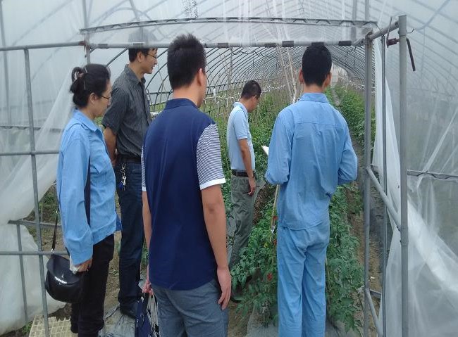 2014年9月12日上午,市农技中心蔬菜科沈海斌科长、李建勇一行就水肥一体化的项目赴宝山实地查看生产情况。在宝山蔬菜站毛明华站长的带领下到田仔蔬果专业合作社查看了黄瓜、番茄的生长情况,作为一个点,田仔生产负责人周淑琴解说了对于此项目水、肥、人工等的测定和对比的情况。