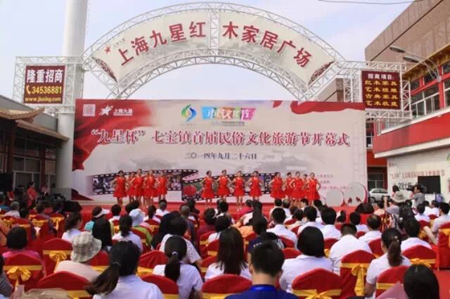 首届民俗文化旅游节是七宝镇和九星集团,为丰富广大人民群众文化生活举办的文化盛宴。以“文化七宝展丰蕴”为主题,将传统民俗融入到红木文化中,民俗文化与红木文化相得益彰,展现了迷人的民俗古韵风情、瑰丽的传统红木文化,烘托出喜庆的节日氛围。不仅为2014年上海市民文化节和闵行区旅游节增添一处新亮点,也成为大众体验古镇民俗风情、观赏了解古典红木的一个好去处。