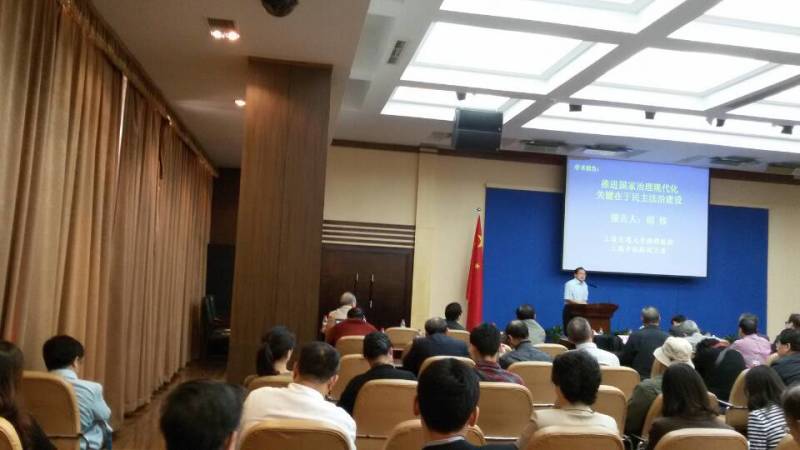 会议报道:上海市社会科学界联合会第八届学会学术活动月开幕式暨学术报告会于2014年10月17日举行。市社联党組书记、专职副主席沈国明主持会议。市委党校、市社联副主席、上海市马克思主义研究会会长王国平;上海交通大学特聘教授、市社联副主席胡伟;上海社会科学院副院长、法学所所长、上海市法学会副会长叶青;上海市世界史学会会长、中国一上海合作组织国际司法交流合作培训基地首席专家潘光等四位专家学者分别作了题为"产业升级的国际比较与发展中国家的路径选择"、"推进国家治理現代化关健在于民主法制建设"、"中国梦与中国司法体制的新进展"、"中国发展面临的国际形势和周边环境"等报告。市社联各学会、研究会会长及有关同志参加了会议,拉开了10月20日一一11月20日为期一个月的"上海市社会科学界联合会(2014年)第八届学会学术活动月的帷幕(详見2014年10月17日《解放日报》《文汇报》)。