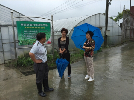 7月11日,第9号超强台风“灿鸿”影响上海,虽然此次台风没有预测的破坏性大,但还是对蔬菜生产造成一定损失。7月12日上午,台风橙色预警信号解除后,奉贤蔬菜站站长曹欢欢、副站长杨银娟等人就赶到各蔬菜基地,实地察看灾情。