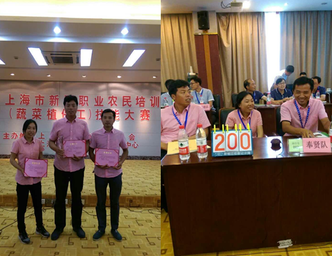 7月21日,由上海市农委、市农技中心共同主办的2015年上海市新型职业农民培训(蔬菜植保工)技能大赛顺利举行,奉贤区蔬菜站选派的三名新型职业农民在本次大赛中荣获团体一等奖。此次大赛主要是考察选手的专业知识基本素养、业务技能水平及团体合作精神。比赛中,三位选手冷静应对,认真作答,团结合作,表现出了丰富的专业技能知识与团队精神,充分展示了新型职业农民的独特风采。通过参加本次活动,促使奉贤区新型蔬菜农民掀起学蔬菜植保知识、技能的新热潮,提高了农民的综合素质,推动奉贤区新型蔬菜农民成长的步伐。