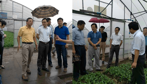 9月15日上午,市农委蔬菜办史明主任,市农机办施忠主任,上海蔬菜经济研究会副会长、上海市绿叶菜首席专家朱为民,上海蔬菜经济研究会副会长、市农技中心副主任张瑞明等一行冒雨来到扬升蔬菜基地检查指导绿叶菜生产工作。区农委杨知行副主任、蔬菜站曹欢欢站长等陪同。