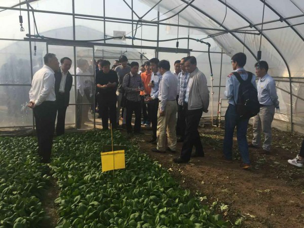 10月16日上午,市农委在奉贤区扬升农副产品专业合作社召开蔬菜工作现场会。市农委主任孙雷、副主任殷欧、市菜办及各区县农委领导、蔬菜办及部分园艺场负责人参观了扬升绿叶菜核心生产基地。参会人员听取了扬升合作社理事长纪阳对现在正在应用的"绿叶蔬菜高效生态绿色防控综合技术"介绍,并现场查看了各项技术的实施情况。