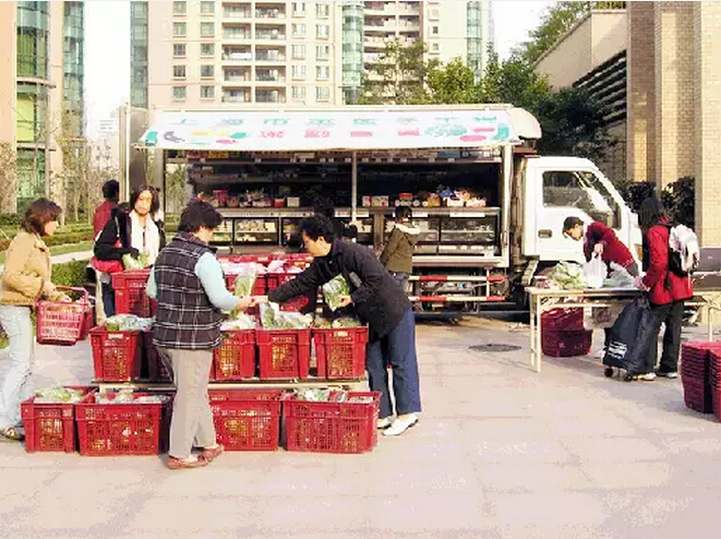 2005年5月份,上海某家媒体连续几期跟踪报道了上海静安区居民买菜难的情况。这条新闻让城市超市关注起了部分小区“买菜难”问题。“就拿位于市中心的南京西路街道来说吧,小区数量多达16个,只有一家农贸市场和一家生鲜超市,分别位于街道的东西两侧,这使家住中间地段的居民买菜十分不便”,城市超市有限公司总经理助理杨华丽告诉记者,对于那些小区里腿脚不灵便的老人来说,买菜甚至成为一种负担。在街道和城市超市沟通后,华业、延中、南西、泰兴等社区的近万户居民则盼来了城市超市蔬菜车,定期送菜上门,居民在家门口就能买到新鲜蔬菜。