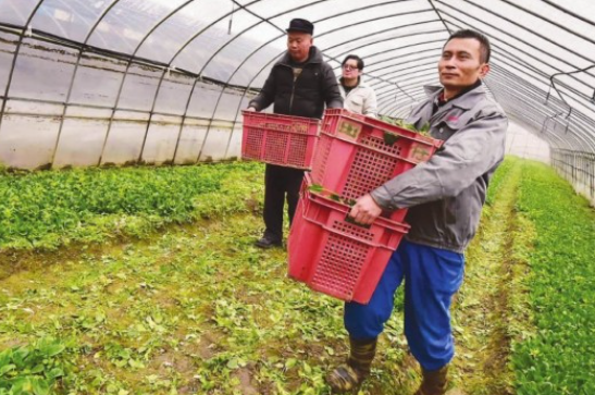 寒流侵袭气温骤降,连日来上海市郊农民顶风冒雨及时抢收部分耐寒性较差的蔬菜,同时为大田蔬菜覆盖防寒保温材料,把寒潮对绿叶菜收成的影响降到最低,许多菜农纷纷增加了蔬菜等农产品的运输和储备量,确保低温雨雪天气中蔬菜的供应和市场的稳定飞图为昨天下午宝山现代农业园区的农民在抢收菠菜飞。