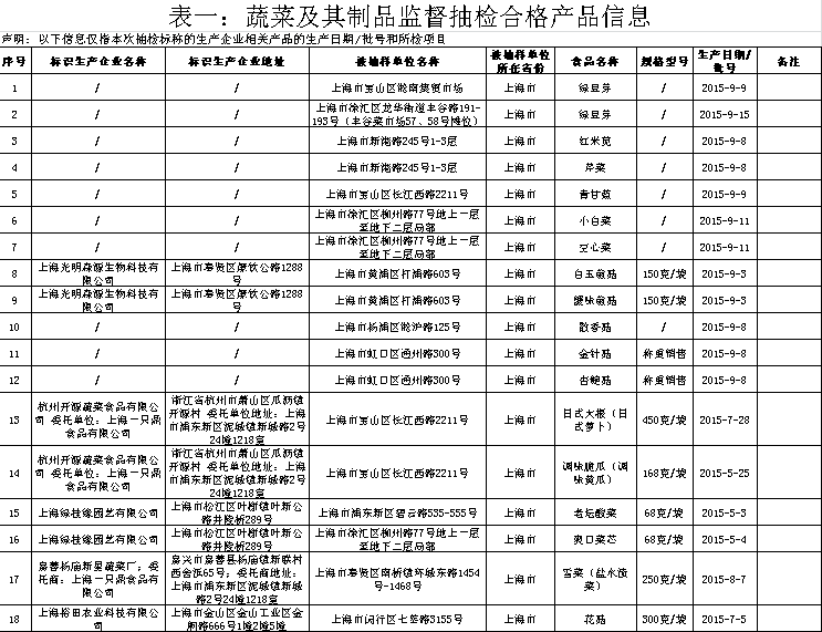 本次抽检的蔬菜及其制品主要包括蔬菜、蔬菜制品等。抽检依据是《食品安全国家标准食品添加剂使用标准》(GB2760)、《食品安全国家标准食品中污染物限量》(GB2762)、《食品安全国家标准食品中农药最大残留限量》(GB2763)、《藻类制品卫生标准》(GB19643)、《食品安全国家标准食品中致病菌限量》(GB29921)等标准及产品明示标准和指标的要求。抽检项目包括重金属、农药残留、食品添加剂、微生物指标等137个指标。共抽检蔬菜及其制品样品99批次,涉及2个生产省份。其中:抽检蔬菜91批次、抽检蔬菜制品8批次,均未发现不合格样品。
