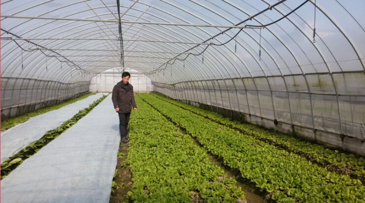 2013年底开始与上海地产农业投资发展有限公司合作试点生鲜农副产品配送业务,依托上海地产集团的资源优势,以及地产农投公司建设的“食当家”生鲜电商销售平台,根据客户订单,组织社员每日采摘新鲜果蔬,进行分拣、包装、配送到公司食堂和住宅小区,配送规模由起初每周100份增加到目前每周1500份,月销售额达80万元,为市区居民提供了安全、放心的优质农副产品,取得了良好的经济和社会效益。(图为为了确保蔬菜生产、供应,丁惠康总经理在田头查看在无防布保温下的青菜生长情况)。