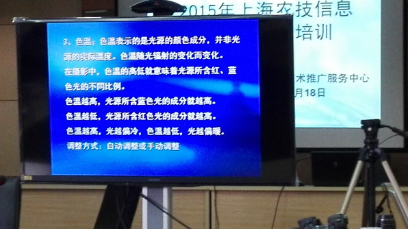 会议主要总结交流了2015年农技信息工作,布置了2016年农技信息工作,会上华正国老师还就信息中运用的摄影摄像技术进行了培训和实训,对大家拍摄的照片进行点评。会后还参观了金山蔬菜研发中心和水果公园,对外景和内景的取镜头进行实训,既开拓了视野了解高科技的蔬菜生产也对信息的采编增加了不少知识。