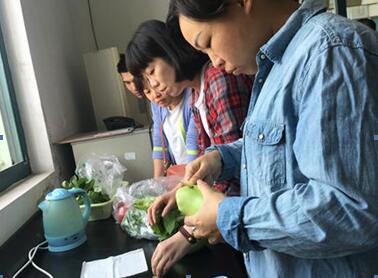 区检测中心李春华老师主要针对镇检测员的操作技能进行督查,重点强调蔬菜取样时应注意的地方、移液枪使用时的垂直度、枪头不能互相污染、剪刀使用事项等方法。在督查过程中,李老师特别对新检测员进行重点指导,从剪菜取样、加入提取液、试剂配制、调0调100到加底物上机,每个步骤都详细讲解,对于其他检测员提出的问题,也一一做出解答,解决大家的困扰,给予了我们很多宝贵的意见,