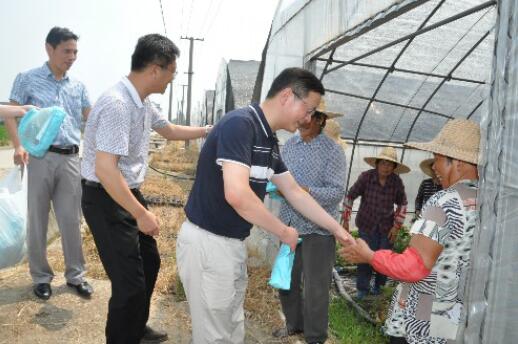 7月27日上午,金山区总工会副主席吴霈一行,金山区农委工会主席陈峰,区农技中心副主任陆纪忠,区农技中心工会主席杨娟芳等来到草莓研发中心慰问基地工作人员。吴霈一行来到了草莓大棚,询问大家在高温期间的工作、生活情况,嘱咐大家劳逸结合,田间劳作避开高温时段,一定要把生产安全放在首位,同时向他们递上防暑降温用品。