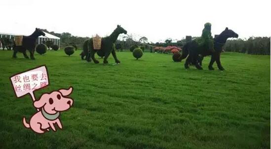 Reality(简称AR)技术视觉体验,利用园区APP中提供的AR相机瞄准景物后,之前静态的景观将会突然间烁烁发出光彩,或是一棵千年古树,或是神奇的树神从枝叶中隐现,带给游客新的游园体验。值得一提的是美的世界,它是由植物造景组成,占地面积3千平方米。园艺景观栩栩动人,活灵活现.每一个植物造景都由上万甚至几十万朵花组成。。其中有非遗文化植物墙;古丝绸之路;十二生肖等上百个植物造型。在古丝绸之路造型中有骑骏马的先人,背负商货的骆驼,高扬颈项的牛马。下图是孔雀开屏和古丝绸之路植物造景点。