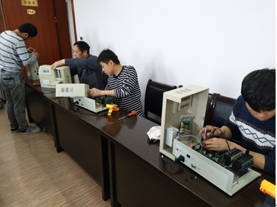 为确保2017年蔬菜农药残留速测工作有序进行,更好的提高蔬菜质量安全。4月14日,奉贤蔬菜站邀请了上海瑞鑫电子科技有限公司的技术人员们,来到区蔬菜站对全区各镇、村、合作社的农残速测仪进行统一检修、维护。技术人员对仪器老化的零部件进行了更换,并对速测仪各个通道进行了调试校正,同时向速测员讲解了日常使用中碰到的一些小问题等。