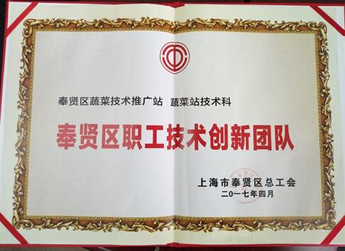 2017年,区蔬菜站技术科再添荣誉,获得由上海市奉贤区总工会颁发的“奉贤区职工技术创新团队”称号。