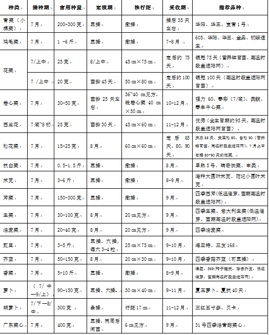 大棚内可适期播种的蔬菜品种参考露地,另增以下品种: