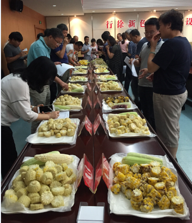 会议分三个阶段:现场观摩、培训讲解及品尝品比。本次田间共展示52个玉米品种,上午专家们深入田头,查看玉米的生长情况及外型品质,并对栽培方法和品种选育进行交流。下午,由陈银华老师解读品种审定要求及品种管理相关政策,陆雪珍老师阐述创新品种、提高品质、助推玉米产业发展,给各区县技术人员和相关企业上了生动的一课。随后,专家们对选出的21个最优品种就玉米的外观品质和蒸煮品质两方面进行品尝打分。外观品质包括穗长、穗粗、秃尖、穗粒排列情况等方面,蒸煮品质包括气味风味、色泽、甜糯性、柔嫩性、皮薄厚等方面,统计得分,最终决出前三的品种分别为上海农科院的沪黑糯、上海华耘的花糯402和上海长征的长征109,同时,长征4号获得最受欢迎奖。