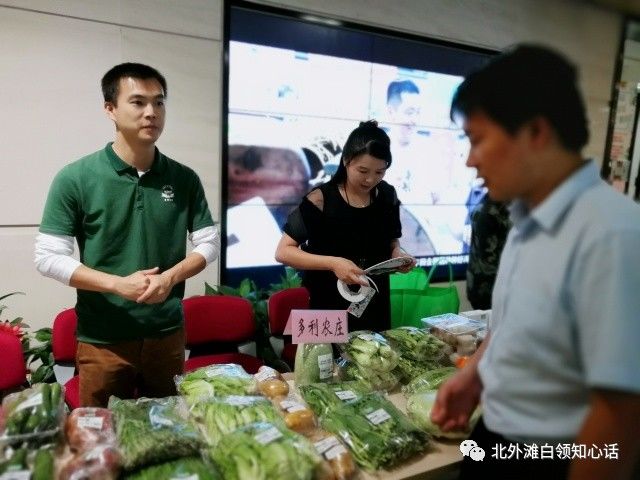 “我们展位今天向楼宇白领们提供最安全、天然、健康的有机蔬菜。”
