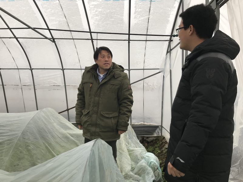 连日来,上海地区大面积的降温、雨雪天气,给上海地区绿叶蔬菜的生产、供给带来了一定的影响。为及时掌握低温雨雪天气对本市郊区蔬菜生产的影响,1月25日、26日,上海蔬菜经济研究会会长、上海市绿叶菜产业技术体系首席专家朱为民研究员分别赴奉贤区景鲜蔬菜专业合作社、松江区浦远绿叶菜专业合作社、青浦区弘阳农业有限公司、嘉定区百蒂凯蔬菜基地等调研绿叶菜生产和茄果类蔬菜的育苗情况,并就如何应对低温雨雪天气提出了指导性意见。首先要做好蔬菜大棚的防灾减灾保护工作,及时清除部分有安全隐患大棚的肩部积雪,防止大棚顶部积雪压垮棚架;二是对在田的绿叶菜幼苗增加内棚覆盖;三是对茄果类蔬菜幼苗在内棚覆盖薄膜的基础上增盖无纺布或遮阳网,及时检查地热线是否正常加热,防止秧苗受冻;四是做好棚内的排水工作,预防水淹蔬菜;五是结合2018年的蔬菜绿色生产工作,在冬季低温雨雪期间做好土壤耕翻和冬季冻垡工作,降低土壤中病菌和虫卵基数,改善土壤质量;五是确保在雨雪冰冻天气下菜农的人身安全与用电安全保护。