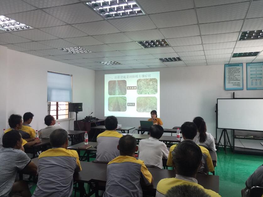 为提高蔬菜种植水平,缓解土壤次生盐渍化,促进菜田耕地的可持续发展,区农技中心蔬菜科的技术人员于7月27日来到上海缘菊合作社为蔬菜田间学校的学员开展设施菜田土壤保育和改良技术培训。根据前期开展的生产调研,该合作社长期种植绿叶菜,部分设施大棚土表产生白色及紫红色盐霜,解决土壤盐渍化问题刻不容缓。此次培训结合合作社生产实际,向学员阐述设施菜田障碍土壤的症状、对蔬菜生产的影响,引起学员重视,其次介绍科学施肥、高温闷棚土壤消毒处理技术、土壤深翻、灌水洗盐、揭膜淋雨、生物肥增效技术、水肥一体化技术等设施菜田土壤保育和改良技术。通过此次培训,提升学员对设施菜田土壤保育与改良意识,进一步提升学员的技术储备,提升合作社绿色生产能力,促进农业可持续发展。
