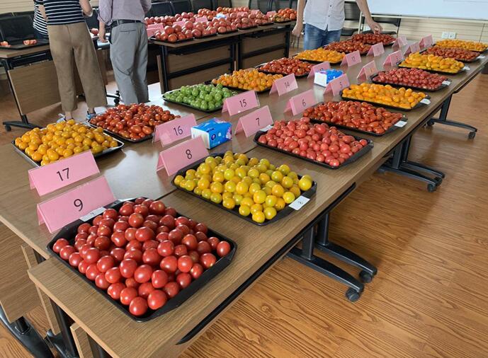 此次品鉴会展示了来自我区各蔬菜种植合作社的17个樱桃番茄、13个大番茄,由参会人员根据樱桃番茄、大番茄的果形、酸甜度、风味等特征进行品尝并进行投票评选出品鉴评优金奖,最终由徐行镇番茄种植大户刘海龙选送的“番小青”以36票荣获本次番茄品鉴大番茄评优金奖、沁友蔬果种植专业合作社选送的“加单”以24票荣获本次番茄品鉴樱桃番茄评优金奖。新迎园餐饮管理有限公司的工作人员对本次番茄品鉴会展示的番茄品种赞赏不已,并与金奖得主对接成功,商讨进一步合作事宜。