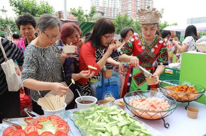 6月16日上午,2019年贵州省黔菜入沪产销对接专场推介活动在上海市普陀区百联中环购物广场举行。现场展示了蔬菜、畜牧、茶叶、粮油等30多类具有贵州特色的农产品。