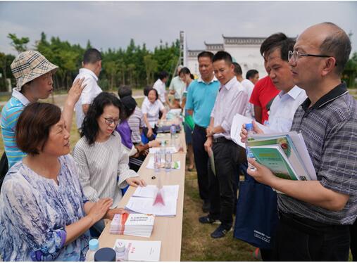 市农业农村委农产品质量安全监督管理处、种业管理处、种植业管理处,市农技中心、种子管理总站,奉贤区农技中心、执法大队,四团镇服务中心、五四村委等部门工作人员及相关参加展销的农资企业人员参会,同时邀请奉贤区农资经营门店代表、水稻和果蔬合作社大农户、四团镇各村农副主任以及五四村农民共100余人现场参观。