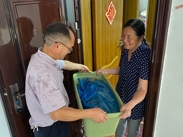 在送材料上门的过程中,有一组人员恰巧遇到了电梯故障。为了让居民顺利收到材料,两位女同志选择一步一步爬楼梯,将十多斤重的材料抬上八楼。“我原本以为今天下大雨不会送了,而且电梯正好故障,没想到你们还帮忙搬上来,真是太谢谢了!”这位居民收到材料后激动地说道。