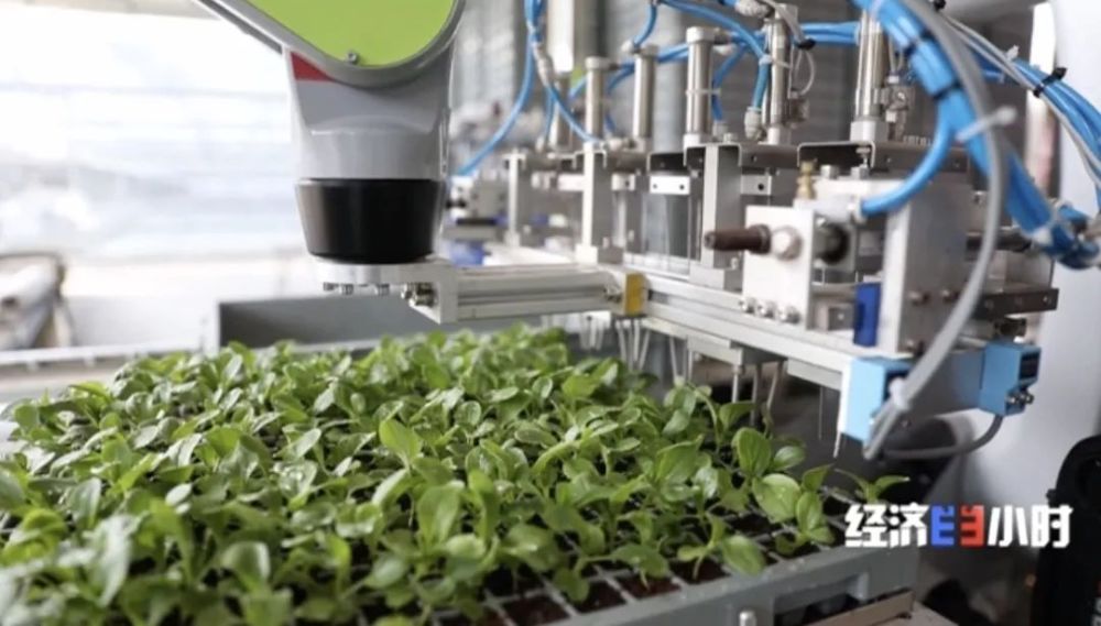 在这家蔬菜基地,一台全自动机器人移栽设备正在将育成的幼苗通过机械转移到定植箱内,完成移栽。刚育好的幼苗又矮又小,十分脆弱,以前这部分移栽工作必须靠人工完成,经过这次技术升级后,可以用机械设备完全替代人工。原本需要四个小时才能完成500盘的播种育苗过程,如今仅需一个小时就可以完成。几个月后,从播种到采收,这个蔬菜基地将全部实现无人化操作。