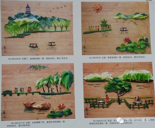本届文博会的主题是“文化让生活更美好”,展会现场精彩看不完,小编在一号馆二层东南的摄影展区,发现了有一部分内容为“菜板上的生活”记录图片,作者将食物摆放在菜板上记录了一家人每天的生活细节并进行拍摄,生动活泼,独具特色,读完这组照片会发现作者已经将自己的心情及对生活的观察巧妙的通过照片表达并传递出来。365天,每天都有奇思妙想!异常温馨!