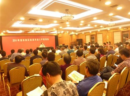 浦东新区农技中心蔬菜科于2014年5月14日在惠南镇举办了蔬菜科技入户培训,蔬菜科袁娟向示范户介绍了2014年蔬菜科技入户的27个主导品种和7项主推技术,解答了示范户在蔬菜科技入户工作中遇到的问题。陈杰高级农艺师为示范户讲解了蔬菜绿色防控技术。同时,培训期间给示范户下发了物化补贴——新肥料芳甸叶面肥。