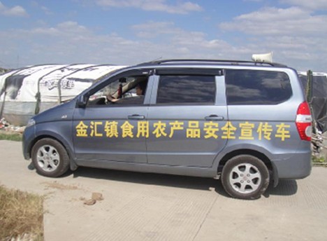 5月中旬,在奉贤金汇镇乡村道路上出现了一辆特色面包车,车上按装了高音喇叭,正在播放着金汇镇食用农产品安全监管宣传资料,这标志着金汇镇食用农产品安全监管宣传月拉开了序幕。这种宣传方式是金汇镇的一大特色,从5月15日到10月底结束。宣传内容有:蔬菜、食用菌、水稻、水产、畜牧生产安全、禁止秸秆焚烧、土地流转等共22条。使金汇镇种养户安全意识得到家喻户晓,人人明白,从而确保金汇镇2014年度食用农产品生产安全。(奉贤)