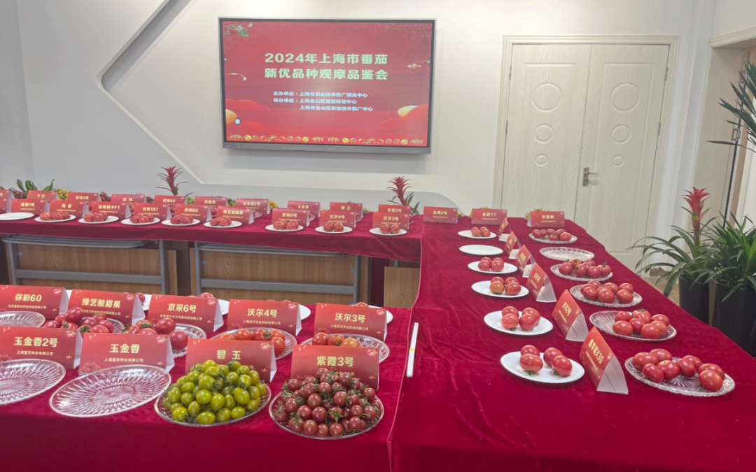 红、橙、黄、绿、紫,5月28日下午,金山区番茄研发中心会议室被五彩的番茄“占领”,2024年度上海市番茄新优品种观摩品鉴活动在此举行。33种新优番茄品种集中展示,不仅带来一场视觉与味觉的盛宴,更为上海番茄产业的高质量发展打下坚实基础。